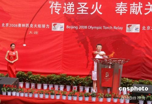 7月17日,最后一棒火炬手、沈陽市委副書記蘇宏章點(diǎn)燃圣火盆,北京奧運(yùn)火炬圓滿結(jié)束了在沈陽的傳遞。 中新社發(fā) 周兆軍 攝