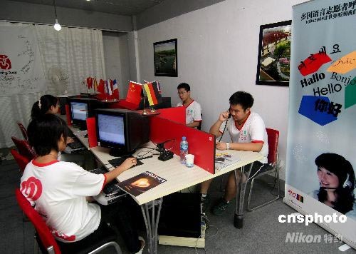 7月17日,青島奧帆賽多國語言志愿者呼叫中心日前正式開始對外服務(wù),客服人員通過查詢可以回答旅行者關(guān)于吃、住、行、娛、購和奧運(yùn)志愿者有關(guān)問題。 咨詢者撥打16882008,可以得到8種語言的語音導(dǎo)航,根據(jù)咨詢者的選擇電話將分配給說日語、朝鮮語、德語、法語、俄語、西班牙語、漢語以及英語的客服人員。據(jù)了解,多國語言志愿者呼叫中心除了解決路線、青島的導(dǎo)游導(dǎo)購、翻譯問題以外,還可以緊急情況下派翻譯到現(xiàn)場服務(wù)。中新社發(fā) 李東升 攝
