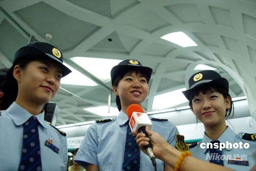 圖:美女乘務(wù)員服務(wù)北京地鐵