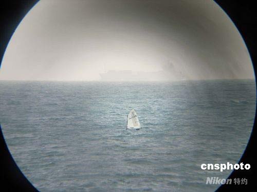 圖:用青島奧帆賽場望遠(yuǎn)鏡遠(yuǎn)眺正在訓(xùn)練的帆船