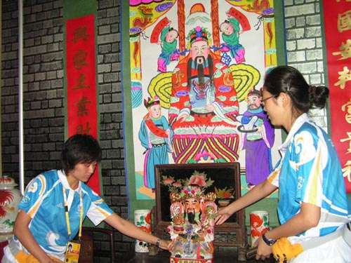 圖:奧運(yùn)分村內(nèi)的民俗展(來源:大公報(bào))