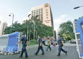酒店門口21日有保安員站崗,酒店外圍圍起鐵馬和鐵絲網(wǎng),酒店附近一段白鶴汀街會在周四開始封閉,行人路和巴士站亦會暫停使用。