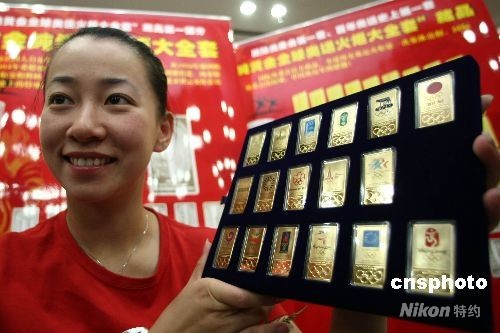 圖:"純黃金全球奧運(yùn)火炬大全套"在北京面世(2)