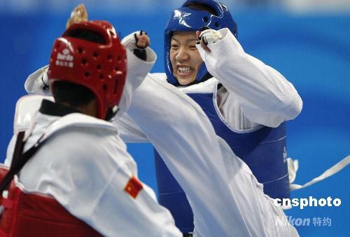 7月24日,中國跆拳道隊奧運模擬賽在北京懷柔進行。這次比賽完全模擬北京奧運會的實地場景,但并非對技戰(zhàn)術(shù)進行演練,而是強調(diào)各方面的細節(jié)讓運動員熟悉奧運會的比賽過程。走出傷病的陳中在此次模擬賽上展示了自己的絕佳狀態(tài),陳中將參加女子67公斤以上級的比賽,準備沖擊第三枚奧運金牌。 中新社發(fā) 杜洋 攝