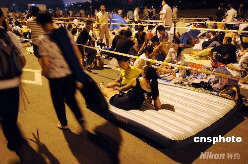 7月25日凌晨,北京兩萬余市民晝夜排隊(duì)期盼買到自己喜愛的奧運(yùn)項(xiàng)目賽事門票。現(xiàn)場有公安、城管、醫(yī)療救護(hù)、志愿者等工作人員24小時(shí)維持秩序,陪護(hù)市民有序購票。 中新社發(fā) 陳文 攝