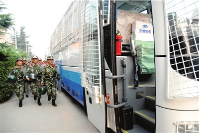 據(jù)了解,為應(yīng)對(duì)奧運(yùn)期間可能發(fā)生的恐怖襲擊,突擊隊(duì)新配有多輛防暴客車,這種客車車身上配有白色金屬防護(hù)網(wǎng),突擊隊(duì)還配有車身帶有尖刺的防彈運(yùn)兵車。