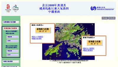 公眾人士可以從天文臺的馬術(shù)比賽天氣網(wǎng)站獲得最新比賽場地的詳細(xì)天氣預(yù)測、天氣警告、實時天氣狀況及環(huán)境保護(hù)署提供的賽場區(qū)域空氣污染指數(shù)。