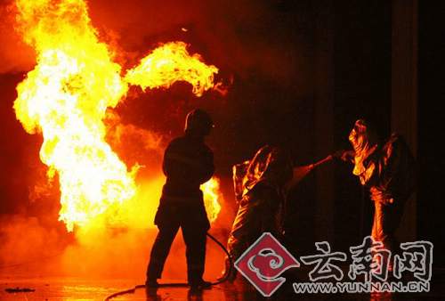 “火鳳凰”突擊隊再次上陣,防爆水炮車、奔馳泡沫戰(zhàn)斗車、舉高噴射車齊上陣,玉溪、曲靖、文山消防特勤部隊也趕來助陣。