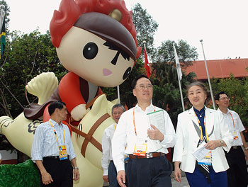 中新網(wǎng)7月29日電 據(jù)星島日報(bào)報(bào)道,近日香港天氣極度炎熱,可能影響運(yùn)動(dòng)員現(xiàn)場表現(xiàn),行政長官曾蔭權(quán)28日巡視沙田馬術(shù)賽場表示,上屆奧運(yùn)在雅典舉行,當(dāng)時(shí)雅典也非常炎熱。他又指比賽中有許多不能預(yù)測的元素,運(yùn)動(dòng)員要準(zhǔn)備克服參賽困難。