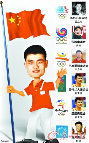 從中國代表團(tuán)參加奧運(yùn)會(huì)的歷史來看,旗手人選還是有一定的規(guī)律的。以夏季奧運(yùn)會(huì)為例,在已經(jīng)參加的5屆奧運(yùn)會(huì)上,中國代表團(tuán)的旗手無一例外全部來自中國男籃,比如1984年洛杉磯奧運(yùn)會(huì)的王立彬,1988年漢城奧運(yùn)會(huì)的宋濤,1992年巴塞羅那奧運(yùn)會(huì)的宋力剛,1996年亞特蘭大和2000年悉尼奧運(yùn)會(huì)的劉玉棟以及2004年雅典奧運(yùn)會(huì)的姚明。無一例外,旗手都是身高2米以上的“巨人”。