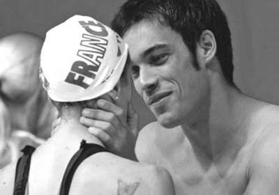 但浪漫的愛情大多不長久,僅僅3個月,馬諾杜就被意大利俱樂部開除而無奈地回到了法國。至此,泳壇的“貝魯奇和卡塞爾”(譯注:此為意大利女影星與法國男明星的愛情組合)的神話愛情也走向了幻滅。導(dǎo)火索是一組意大利媒體刊登的馬林和意大利女泳將佩雷戈里尼在池中相依相偎的親昵照片,雖然兩位當(dāng)事人堅持稱“只是好友”,馬諾杜還是盛怒之下很快和法國同胞、同在國家游泳隊的本雅明·斯塔西留斯走到了一起。而這也是繼佩里·亨利之后,馬諾杜在國家隊隊友中交往的第二位男友。