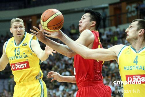 圖為王治郅在比賽中遭遇對(duì)手強(qiáng)力攔截。中新社發(fā) 盛佳鵬 攝