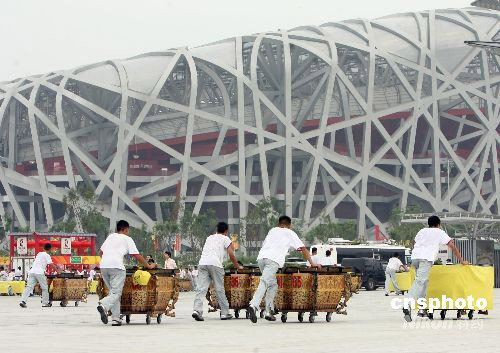 北京“鳥巢”進(jìn)行奧運(yùn)會開幕式彩排