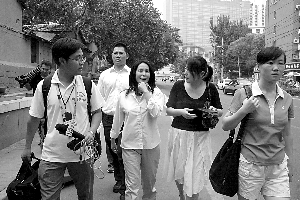 昨日,北京紫竹院路附近,多位記者沿路采訪高金素梅。徐春柳 攝