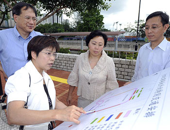 運(yùn)輸及房屋局局長(zhǎng)鄭汝樺(中)到沙田源禾路,視察奧運(yùn)馬術(shù)比賽的交通運(yùn)輸安排。(圖片來源:香港特區(qū)政府網(wǎng)站)