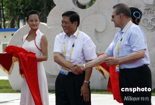 圖:羅格與劉淇為奧運(yùn)村"和平友誼墻"剪彩