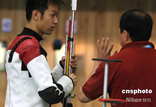 8月2日上午,雅典奧運(yùn)會射擊冠軍、中國著名神槍手朱啟南在北京奧運(yùn)會射擊賽場靜心訓(xùn)練,3組實(shí)彈射擊,30發(fā)獲得299環(huán)的優(yōu)異成績。 中新社發(fā) 任晨鳴 攝