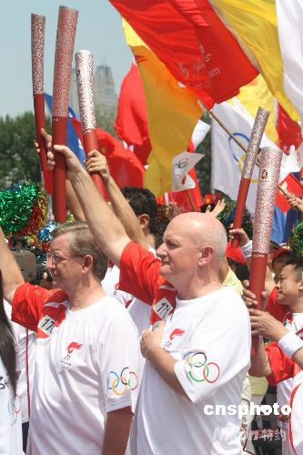圖:外籍火炬手傳遞火炬 深情祝福北京、四川