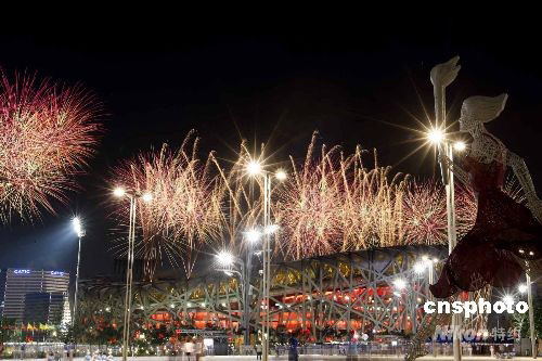 8月2日,北京奧運(yùn)會(huì)開(kāi)幕式舉行第二次彩排,璀璨的焰火扮靚國(guó)家體育場(chǎng)“鳥(niǎo)巢”。 中新社發(fā) 杜洋 攝