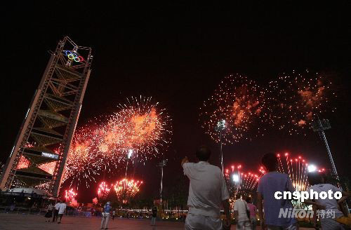 圖:“鳥巢”上空煙花綻放
