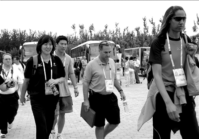 美國女排一行于昨天下午4點左右達到首都機場3號航站樓。在從正常出口走出的美國女排隊員的“掩護”下,郎平從其它通道直奔停車場大巴,但還是被一些細心的記者“堵”到。她簡單地聊了兩句,“北京奧運會是全世界人民的奧運會,希望大家盡情享受。我們球隊的首要任務(wù)是小組出線,而且盡可能力爭頭名”。美國隊與中國隊、古巴隊等分在A組,B組則云集巴西、俄羅斯和意大利3支超一流強隊。如果不能獲得A組第一,那么在關(guān)鍵的1/4決賽中,將遭遇B組的強勁對手。郎平表示,希望美國隊奉獻出最好的比賽。