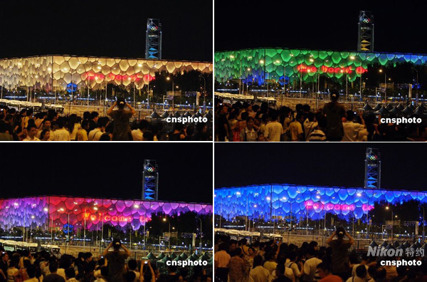 美圖:“水立方”燈光色彩變幻莫測