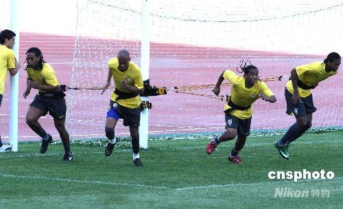 8月3日下午,巴西男足奧運(yùn)會(huì)賽前在沈陽訓(xùn)練爆發(fā)力。當(dāng)日下午,2日抵達(dá)沈陽的巴西男足在鐵西體育場(chǎng)進(jìn)行奧運(yùn)會(huì)前的首次訓(xùn)練。 中新社發(fā) 張宇 攝