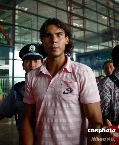 8月4日,有著“紅土之王”稱號(hào)的西班牙網(wǎng)球名將納達(dá)爾抵京,開(kāi)始北京奧運(yùn)會(huì)征程。中新社發(fā) 富田 攝