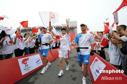 圖:射擊冠軍張山傳遞成都首棒奧運火炬