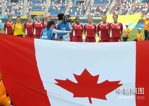 8月6日下午,奧運女足在天津“水滴”體育場拉開戰(zhàn)幕,首場比賽阿根廷女足迎戰(zhàn)加拿大。圖為加拿大女足出場儀式。 中新社記者 陳文 攝