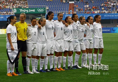 8月6日,北京奧運(yùn)會(huì)秦皇島足球分賽場(chǎng)首場(chǎng)女足預(yù)賽,日本對(duì)新西蘭的比賽拉開戰(zhàn)幕。新西蘭隊(duì)集體亮相。中新社記者 劉新 攝