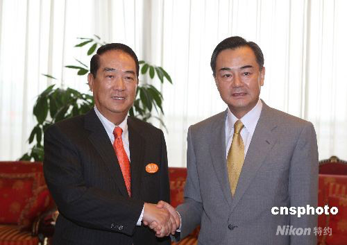 8月6日,中共中央臺辦主任王毅在北京首都國際機場歡迎應(yīng)邀出席北京奧運會開幕式的親民黨主席宋楚瑜一行。 中新社發(fā) 廖文靜 攝