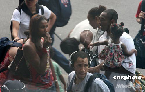 2008年8月6日15點33分,美國籃球隊到達北京首都機場。NBA球星科比攜全家來京參加北京奧運會。 中新社發(fā) 北有宋喬 攝