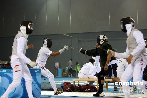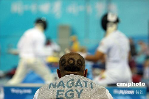 8月7日,北京國(guó)家會(huì)議中心擊劍館,一名“頭頂五環(huán)”的埃及運(yùn)動(dòng)員正在觀(guān)看其他運(yùn)動(dòng)員訓(xùn)練。 中新社發(fā) 盛佳鵬 攝