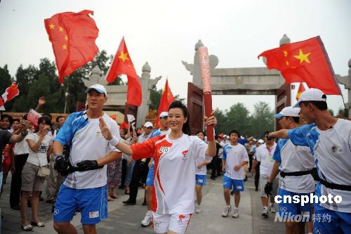 圖:宋祖英在北京地壇傳遞奧運火炬