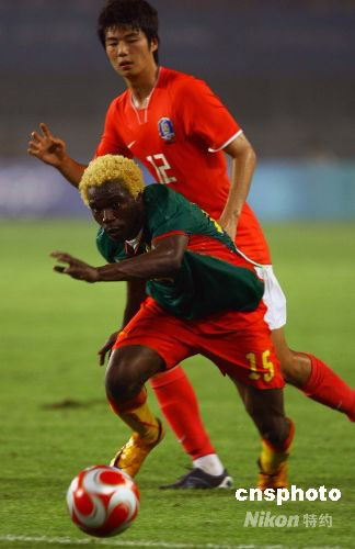 8月7日,北京奧運男子足球預(yù)賽開賽,韓國國奧迎戰(zhàn)喀麥隆隊的比賽在秦皇島奧體中心舉行。 中新社發(fā) 劉新 攝