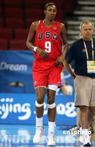 8月7日晚,雅典奧運(yùn)會(huì)冠軍美國(guó)女籃到北京奧運(yùn)會(huì)籃球比賽館--五棵松籃球館訓(xùn)練,球隊(duì)的超級(jí)中鋒萊斯麗在訓(xùn)練中舊傷復(fù)發(fā),傷勢(shì)不明。 中新社發(fā) 任晨鳴 攝