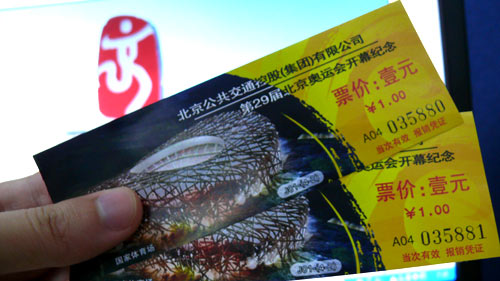 8月8日,2008北京奧運(yùn)會(huì)開幕普通紀(jì)念車票開始在北京市公交集團(tuán)所屬的全部公交線路上發(fā)售,乘客在京乘坐公交車時(shí)可以購(gòu)買。