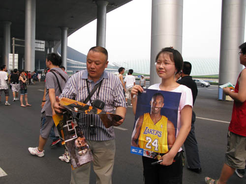 北京父女機(jī)場(chǎng)追科比。(美國(guó)《僑報(bào)》/孫延攝)