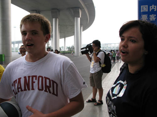 另外,明星組合S.H.E.出站時(shí)將機(jī)場(chǎng)的追星局面推向高潮。敏感的記者、球迷看見(jiàn)簇?fù)砣巳航?jīng)過(guò),誤以為“夢(mèng)八”到來(lái),蜂擁而上。之后,李宇春的到來(lái),也讓現(xiàn)場(chǎng)一些外國(guó)記者“誤會(huì)”為體育明星。(孫延)