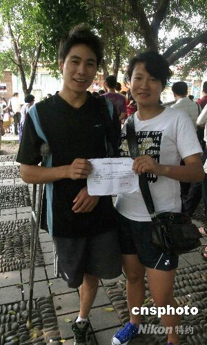 8月8日,重慶市渝中區(qū)婚姻登記處外,曾參加過中國殘疾人運(yùn)動(dòng)會(huì)的田徑運(yùn)動(dòng)員王麗娜(右)和羽毛球運(yùn)動(dòng)員程良華(左)正在等候辦理婚姻登記手續(xù)。 中新社發(fā) 周陽 攝
