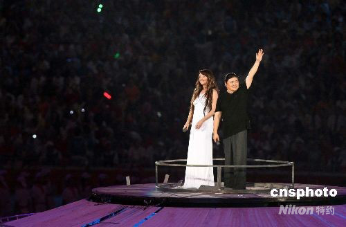 8月8日晚,北京奧運會開幕,中國著名男歌手劉歡和英國著名女歌星莎拉·布萊曼(Sarah Brightman)在“鳥巢”中央共同演唱北京奧運會開幕式主題歌《you and me》。 中新社發(fā) 任晨鳴 攝