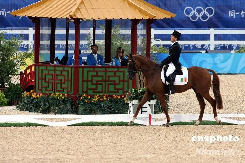 圖為愛爾蘭選手奧康納在三項(xiàng)賽第一回合盛裝舞步賽中。中新社發(fā) 洪少葵 攝
