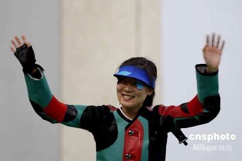8月9日,北京射擊場(chǎng),中國(guó)選手杜麗微笑入場(chǎng)參加女子10米氣步槍決賽。中新社發(fā) 盛佳鵬 攝