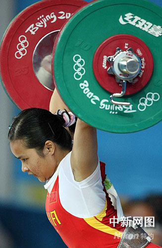 8月9日上午,中國舉重選手陳燮霞在北京奧運會女子舉重48公斤級決賽中氣勢如虹,以總成績212公斤打破奧運會記錄,力壓各路群芳獲得冠軍,為中國軍團斬獲本屆奧運會的第一枚金牌。中新社發(fā) 任晨鳴 攝