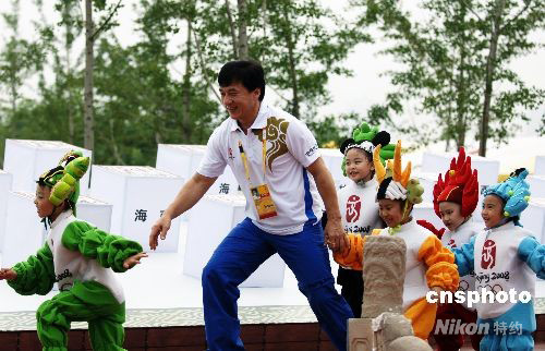 8月9日,大型文化展示活動(dòng)《中國(guó)故事》在北京奧林匹克公園公共區(qū)正式開幕,在開幕式上,成龍攜帶“福娃”上場(chǎng)。奧林匹克公園公共區(qū)中國(guó)故事展示區(qū)的30多個(gè)祥云小屋,將展示各個(gè)省區(qū)市留存的國(guó)家級(jí)非物質(zhì)文化遺產(chǎn)。 中新社發(fā) 王東明 攝