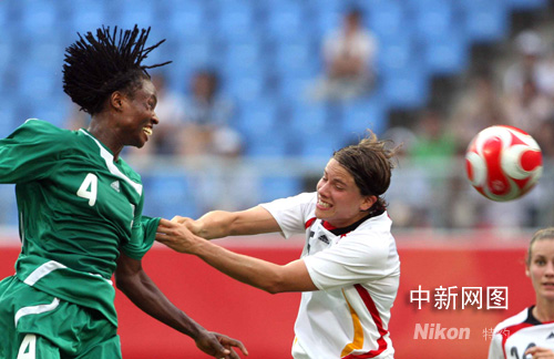 8月9日下午17時,奧運女足小組賽次輪比賽全面打響。在沈陽奧體中心,世界冠軍德國隊在F組的對手是非洲勁旅尼日利亞隊。中新社記者 張宇 攝