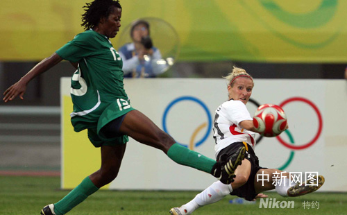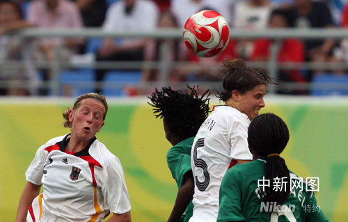 北京奧運女足德國對陣尼日利亞。中新社記者 張宇 攝