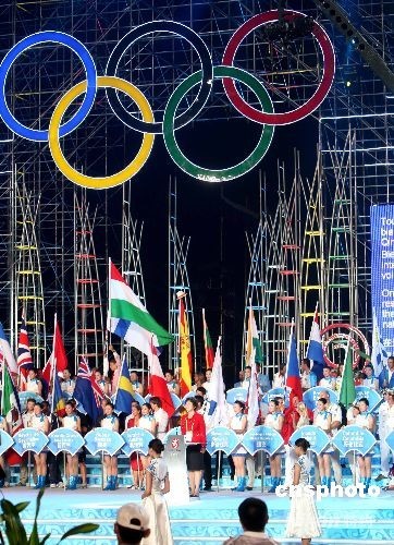 第29屆奧林匹克運(yùn)動(dòng)會(huì)帆船比賽啟動(dòng)儀式8月9日晚在青島舉行,來自62個(gè)國家和地區(qū)的運(yùn)動(dòng)隊(duì)代表出席儀式。中新社發(fā) 趙振清 攝