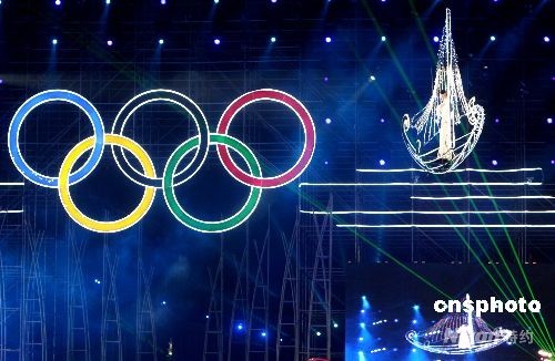 第29屆奧林匹克運(yùn)動(dòng)會(huì)帆船比賽啟動(dòng)儀式8月9日晚在青島舉行,來(lái)自62個(gè)國(guó)家和地區(qū)的運(yùn)動(dòng)隊(duì)代表出席。藝術(shù)家乘“電動(dòng)帆船”從天而降在空中進(jìn)行演唱。中新社發(fā) 趙振清 攝